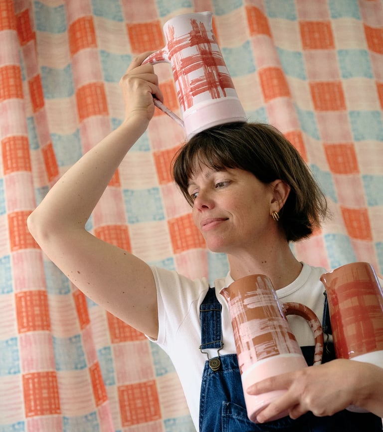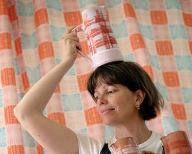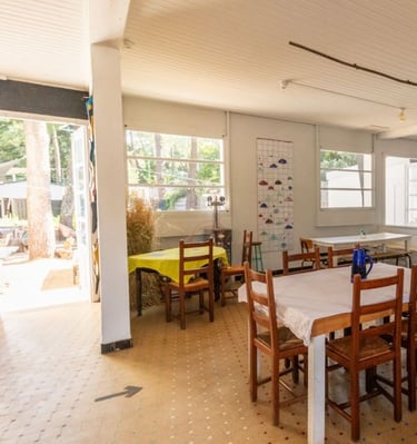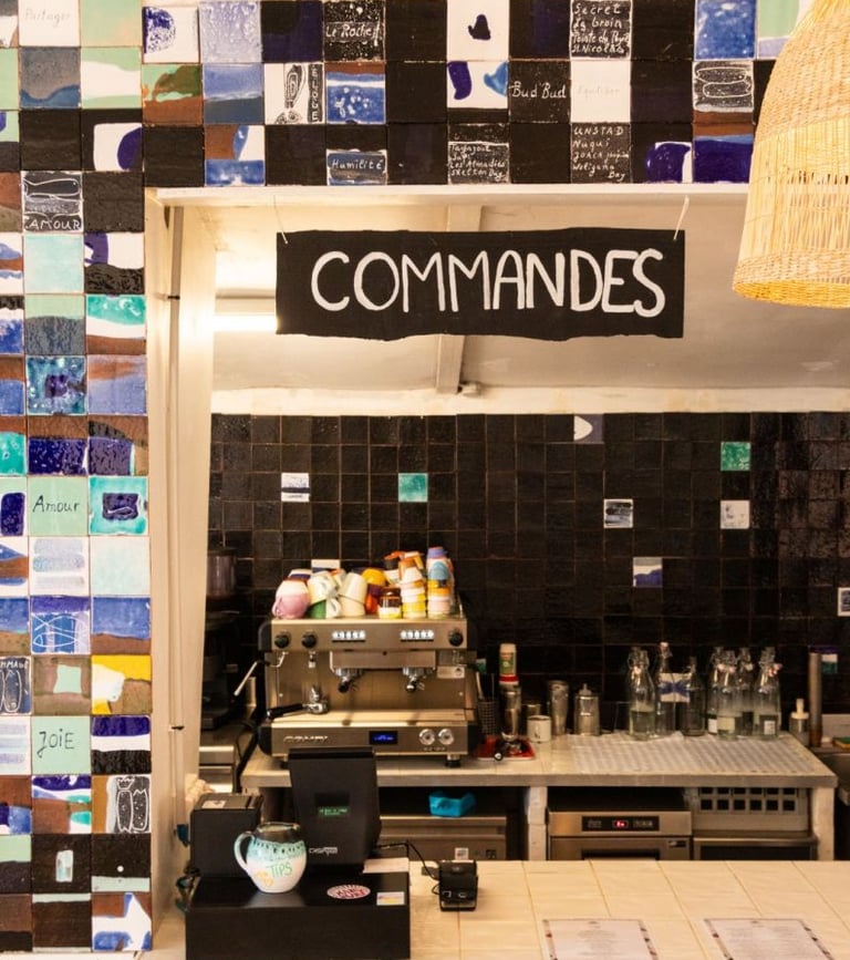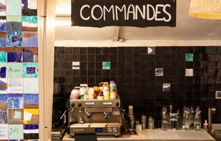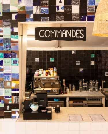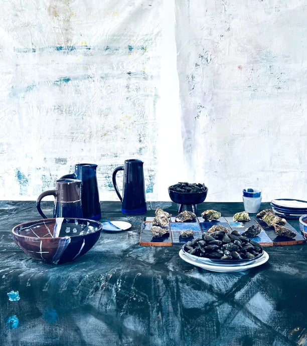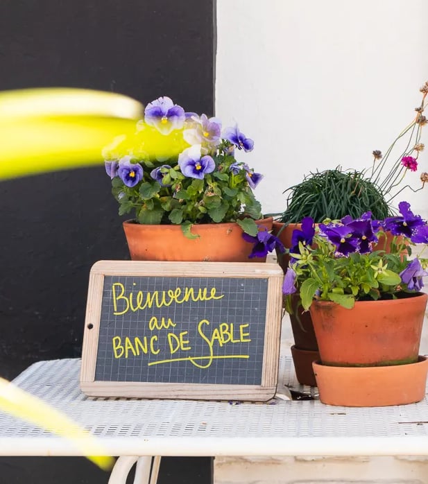 Les appartements du Banc de Sable ainsi que le restaurant sont décorés à partir de ses créations : assiettes, verres, nappes et objets décoratifs, pensés comme une prolongation de l’expérience du lieu. Chaque espace reflète une esthétique sensible, authentique et cohérente avec l’esprit surf, nature et convivialité.