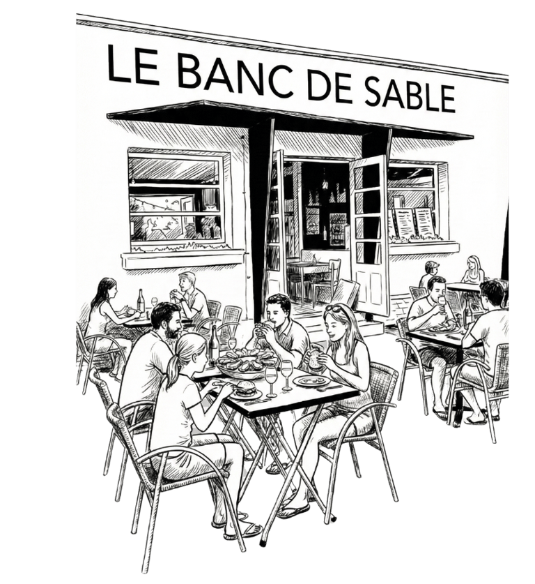 Dès l’arrivée des beaux jours, la cuisine du Banc de Sable ouvre ses portes pour accueillir les visiteurs du coin et proposer une programmation d’événements tout au long de l’été. Restaurant, soirées conviviales et rendez-vous festifs rythment la saison dans une ambiance surf et nature.