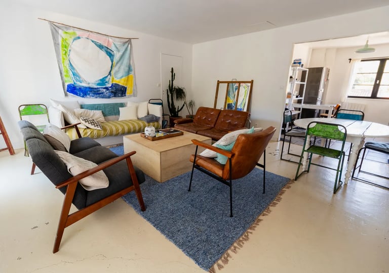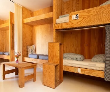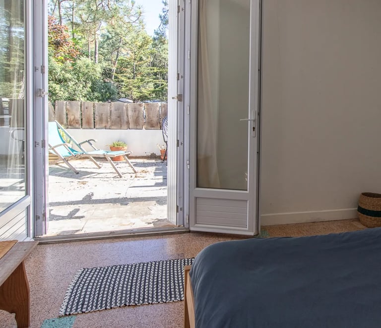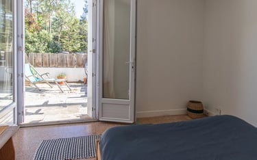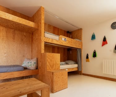 Un appartement spacieux (100m2) et lumineux situé à l'étage de la Surf House. Pensé pour la vie en groupe, le logement est idéal pour les séjours en famille ou entre amis.