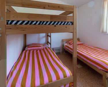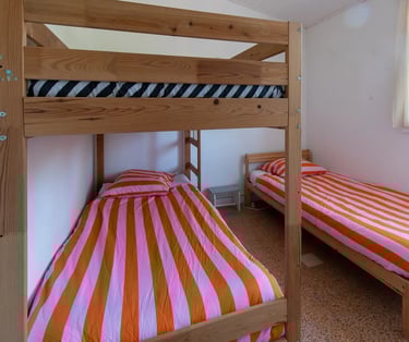 3 chambres avec 1 lit double, 2 lits simples et 2 lits superposés